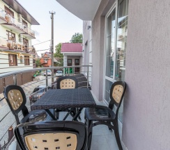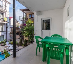 В глубине просторного зеленого двора расположено несколько корпусов, в которых находятся 2, 3 и 4 местные номера. На территории есть общая кухня с необходимым набором посуды для самостоятельного питания, мангал. Имеется автостоянка бесплатная, бассейн с подогревом и интернет Wi-fi.
