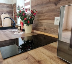 Бронировали семейный номер в Soul&Spa на выходные, остались очень довольны. Номер уютный, есть всё необходимое для комфортного отдыха – кондиционер, кровати с удобными матрасами, телевизор, вместительный шкаф для вещей. Имеется балкон (мы проживали на втором этаже) с прекрасным видом на дворик отеля и посёлок. Двор хочется отметить особо – цветущий, зелёный, благоухающий разнотравием. Там каждый найдёт уголок по своему вкусу – можно устроиться в одиночестве с книгой и бокалом вина, а можно душевно провести время с компанией, расположившись в беседке. Также на территории есть батут, детская площадка и настоящая изюминка, приводящая в восторг и детей, и взрослых – вольер с парочкой милейших сурикатов. Кухней-столовой, расположенной на первом этаже, мы не пользовались, но там есть абсолютно всё для приготовления еды – посуда, холодильник, микроволновка, печка – вся техника современная, в прекрасном состоянии. Санузел находится на этаже (отмечаем это не как минус, но как нюанс, который просто нужно учитывать, может быть для кого-то принципиально). Отель расположен примерно посередине между озером Абрау и морским побережьем, и туда, и туда примерно 10 минут на машине. Самые тёплые слова хочется сказать в адрес хозяев отеля – Оксаны и Артура, видно, сколько души, сил и энергии вы вкладываете в своё дело. Спасибо вам за наш прекрасный отдых и впечатления!