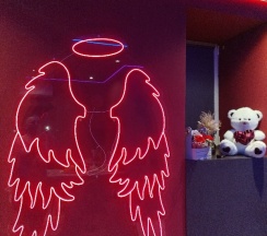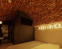 При входе были приятно удивлены аромату, но в номере аромат отличался и это придало некого шарма. В душевой комнате неоновая подсветка, смотрится очень необычно, да и в целом номер весь в приятном неоне. Удобный матрас. Чай, кофе, сливки вода в номере.
