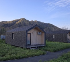 Домики уютные новые из настоящих материалов ,пахнет деревом в сочетании с целебным воздухом Алтая !Владелец базы очень радушный сердечный человек ,во всем помогал ,база оборудована полностью для отдыха есть классный бассейн,беседка,мангалы и решётки,дрова всё на высшем уровне что бы чилить после активного отдыха !!!