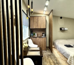 Прекрасное место для отдыха вдвоем. Порадовало, что есть все необходимое для проживания, средства гигиены, посуда, полотенца. Всё чисто и очень уютно. Во дворе Классная мангальная зона и шатер для отдыха.