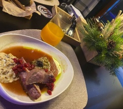 Были тут в первые. Понравилось абсолютно все, но есть одно но!? Блюда из оленины, а именно мясо оленины не правильно приготовлено, особенно стейк из оленины. Видать повар забыл прочистить мясо оленины от ненужных вещей, что в последствии дало свой результат запаха. А так персонал очень вежлив, отнёсся с заботой к каждому клиенту.