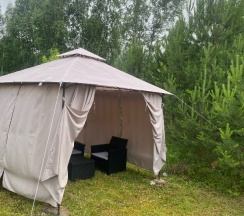 Очень понравилось, что территория базы не огорожена. Есть ощущение простора. Как будто отдыхаешь в лесном домике. Мой сын сдружился с сыном хозяев. Они вместе гуляли, играли и здорово проводили время. Особенно понравилась костровая зона. Вечерние посиделки у костра вместе с другими отдыхающими под звездным небом - это особая атмосфера.