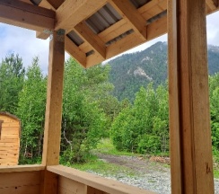 Современные уютные чистые домики. Тишина, горы и рядом река Катунь. Вечером можно пожечь костёр и полюбоваться на звёзды. Есть мангальная зона, мы каждый вечер жарили шашлык. Очень понравилось! Буду рекомендовать эту базу.