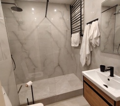 Всё отлично. Приятный дизайн, чисто, кровать удобная. Всё новое, не ушатанное. Расположение отличное: до Юного вокзала идти ± час пешком, до Рыбной деревни - минут 50, до Музея янтаря - минут 25. Я везде ходила пешком, поэтому такие ориентиры, но в 2-5 минутах ходьбы есть остановка общественного транспорта, так что доехать тоже до всего можно.