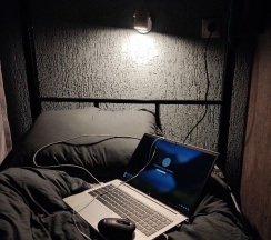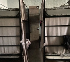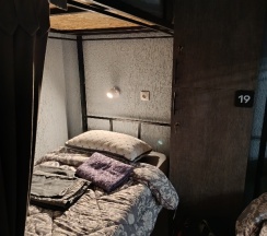 Всё новое, очень чисто. Видно, что сделано с любовью и продумано до мелочей. Индивидуальные шторки на кроватях, у каждой своя розетка и индивидуальное освещение. Рядом с кроватью большой шкафчик с замком. Хозяйка приветливая.