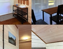 Внутри домиков просторно, есть посуда, холодильник, чайник, чай, кофе, наборы для ванной, полотенца, чистейшее белье.