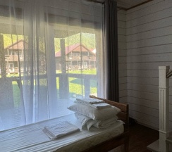 База отдыха чудесная! Очень чисто в номерах,большой бассейн,который чистят каждое утро и накрывают на ночь. Просторная мангальная зонв,которая оборудована всем необходимым включая раковины. Также в каждом номере пастельное белье белое,которое не имеет ни одного пятна,просто белейшее! В номере имеются косметические принадлежности и чайные. В душе всегда есть горячая вода и очень чисто, предоставляется много полотенец. Огромный плюс,что имеется кондиционер 😍 Персонал базы доброжелательный, девушка Элина и молодой человек Игорь замечательные люди,любая просьба решается за минуты. Также при проживании на данной базе предоставляется скидки на моторафтинг и посещение палеопарка. Теперь всегда будем останавливаться только здесь,сервис на высшем уровне.