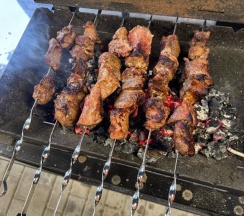 # есть мангальная зона - просторная , все чистенько, есть решётки и все необходимое.