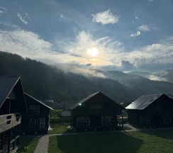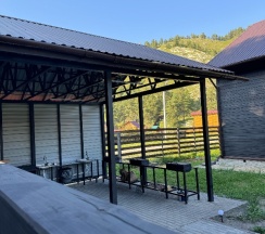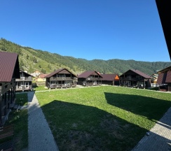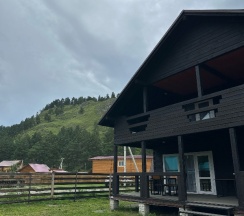 Проживали с 18 июля 4 суток. Была бы возможность, поставила бы 10 звезд 🔥 данная база новая, всё чисто и ухожено, уровень номеров и цена соответствует. Качество чистоты постельного белья, полотенец идеально. Для проживания тут есть всё и даже больше, от чего мы были в шоке, ну идеально просто. Полотенце для бассейна отдельное тоже есть. В номерах чайник, холодильник, стаканы для холодных напитков, чашки для горячих. Бассейн это что-то нечто, красивый, чистый, теплый, подсветка, ну просто идеально, отдельно в бассейне есть место для ребятишек. Можно взять надувной круг у администратора, для детей там тоже можно попросить нарукавники. Перед лестницей в бассейн имеются ванночки с водой, чтобы грязными ногами не лезли в бассейн, прыгать и нырять с бортиков запрещено, считаю это хорошо, такие правила необходимы. Администрация за этим следят, молодцы. Ночью красотища, вид на горы это не описать словами. Мы были без детей, НО, тут есть правила, которые четко соблюдаются, музыку в 22.00 выключали, ночью никто не наводит пьяный кипишь, поэтому с ребятишками очень рекомендую, можете смело сюда заезжать. Несмотря на это, мы сидели компанией до поздна, никто никому не мешал, все было круто. Кухня отдельная с полным комплектом всего необходимого есть. Отдельная крутая мангальная зона. Тут же и раковина есть. Про работу администратора Анастасии
