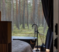 Вилла с собственной видовой сауной на террасе – это дом уникальной конструкции площадью 30 м² + крытая веранда. Ваша личная панорамная сауна на террасе – это живая картина леса, меняющаяся с каждым часом, пока вы наслаждаетесь теплом. Идеальное место для восстановления сил и полного единения с природой