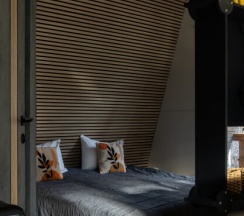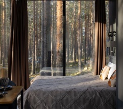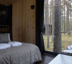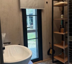 • Полная приватность: в темное время суток панорамные дома при включенном свете могут быть заметными снаружи, поэтому дом Дзен дополнен шторами black out, которые обеспечат Ваше абсолютное уединение и безмятежный сон.