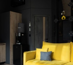 • Кухонная зона оснащена чайной станцией, мини-холодильником и набором посуды для сервировки блюд.