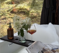 ▎Особая изюминка — собственная купель на террасе, где вы сможете расслабиться в горячей воде под открытым небом. Одна протопка купели уже включена в стоимость проживания. По Вашему желанию мы можем украсить купель ароматными травами и фруктами (стоимость украшения – 2000 рублей).