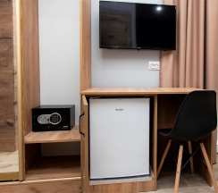 Комнаты хоть и не большие но вполне чистые. Розетки в удобных местах, есть раскладной диванчик, маленький телевизор (хотя им наверное уже никто и не пользуется), фен, сейф, тумбочки для ботинок (это удобно), чайник, а также есть неплохой душ (им нужно аккуратно пользоваться, чтоб вода не разлилась по всеми туалету). Не самый красивый вид из окна. Хороший отель, чтоб в пик жары переждать в нем. Однин из наилучших отелей по цене/качеству.