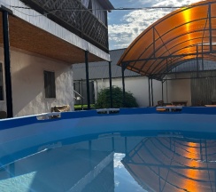На территории гостевого дома имеется продуктовый магазин 🛒, досуговая площадка для детей 🧒 (бассейн 🏖️, песочница 🏝️, качели), есть мангальная зона 🍢 и беседки, дополнительные столики для времяпровождения 🕒, кухня 🍳 для самостоятельного приготовления пищи
