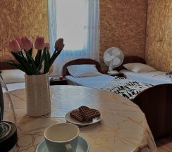 Спасибо Камилле за радушный приём, были с мужем на выходных. Комнаты компактные, с террасой, сидели вечером под музыку ужинали. Чисто, уютно. Можно оставить авто возле дома. Завтраки, обеды вкусные, с душой! До озёр близко, до дискотеки тоже. Рядом торговые ряды, можно прогуляться. Приедем ещё.