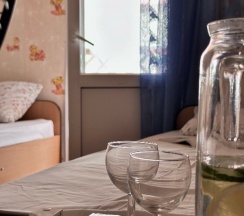 Номера: комфортный 2-х комнатный семейный номер 🛏️, свежий ремонт, кондиционеры в каждой комнате 🌬️, телевизоры с выходом в интернет 💻, шкаф для вещей.