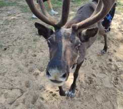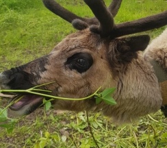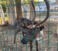 Есть животные на ферме и ласковый северный олень, которых можно кормить и гладить.