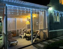 Вечером можно включить подстветку из гирлянд и создать себе праздничную атмосферу. Есть даже отдельная подсветка мангальной зоны, чтобы готовить при освещении.
