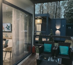 Проводили свадьбу в ресторане и решили забронировать для родителей домик, так как они приехали из далека. Это максимально удобный вариант, вышел после банкета и вот твой дом. При этом,находясь в домике вообще не слышно окружающие звуки. Сам домик стильный, внутри все необходимое( кондиционер, холодильник, чайник,два телевизора,кровать и диван, шкаф, в санузле есть все мыльные принадлежности), веранда с креслами, окна в пол с видом на канал и проплывающие корабли. Очень атмосферно. Включён завтрак,на выбор 4 варианта завтрака. Анна постоянно на связи, ответит на любой вопрос. Мы остались очень довольны! Теперь хотим вернуться с мужем, чтобы провести время на природе у вас! Спасибо за гостеприимство!
