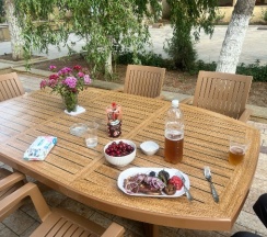Чудесное, тихое место в дали от городской суеты. Отдыхали с 21.08 по 01.09.2025г. Приехали в отель в 20:00 дорога из аэропорта долгая. Устали. Но когда зашли на территорию отеля поразились тому,как обнимает тишина и спокойствие. Совсем не далеко приятно шуршит прибой. Луиза сразу проводила в наш номер: Чистота, красота, все новое,микроволновка,чайник, варочная плита, утюг,фен, красивая,удобная мебель всё есть чай,кофе как дома. Спали как младенцы)) Пляж песчаный, не оборудован, но можно взять на прокат шезлонг. Дно песчаное, приятное. Море мелкое,но это даже забавно( идёшь,идёшь, а все по пояс))) Сама хозяйка готовит прекрасные завтраки. Встречались с гидом. Взяли 4 экскурсии (самые интересные на наш взгляд). Дорога до места экскурсий далековата и утомительна, но по возвращении в отель о дороге забываешь и остаются только эмоции об увиденном на экскурсии)). Подобралась у нас в отеле прекрасная, душевная компания, вечерами сидели за общим столом дегустировали дербентское вино, делились впечатлениями об отдыхе. Луиза и Шамиль всегда помогут советом где, что купить и куда съездить (очень милые и гостеприимные хозяева). Уезжать не хотелось. Прощались со слезами на глазах. РЕКОМЕНДУЮ всем этот прекрасный атмосферный отель. Спасибо вам Шамиль и Луиза.