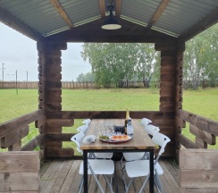Отмечали день рождение в сентябре. Сняли сразу 2 домика, что рекомендую для большой и шумной компании. У каждого домика есть мангальная зона и зона отдыха на которой можно встречать гостей 😊. В домиках есть все необходимое и даже чуть больше 👍. Парились в бане, окунались в бассейне, играли в волейбол (есть сетка) собирали грибы прямо на территории)) в каждом доме колонка, микрофон, по шуметь можно хорошо и долго. Спасибо за приятно проведённое время.