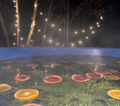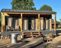Они только открылись, домики еще совсем новые , можно взять с питанием, мы брали завтраки, есть мангалы для шашлыков, шезлонги , прокат сапов, передевалки, уличный душ, можно с питомцем, самый кайф что это черта города и можно спокойно заказать доставку или такси.
