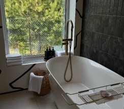 Один из лучших коттеджей,где мы были, и определённо, лучший сервис в домах Jugle! Многим до такого уровня ещё расти и расти. Спасибо хозяину, администратору и всем помощникам за уют и гостеприимство. Второй раз в гостях, первый раз были в доме Jungle в январе 2024г, а совсем недавно в марте приехали в дом Simple. Оба дома просто чудесны, шикарный интерьер, простор и чистота везде. Есть всё необходимое для проживания, супер мощный фен, обширная аптечка, зубные щётки и паста, мицеллярная вода и принадлежности для душа, белоснежное бельё и удобные кровати, красивая посуда и бокалы. Всегда подготовят полотенца и халаты с шапочками и тапочками на каждого гостя,если бронируете с чаном. А чан стоит взять, так как он прекрасен: чистый и новый, без ограничений по времени, просто истинное наслаждение. Удобно, что сотрудник полностью может подготовить чан для вас. Внимательный хозяин, всегда на связи, отвечает молниеносно, чувствуется забота о своих гостях,это большая редкость в наше время! Администратор просто душка, все быстро, понятно рассказала и показала! Забыли взять розжиг и угли,без проблем администратор нам принесла в счёт части залога. Отдельная благодарность за проигрыватель и камин, красивую лестницу, шикарную ванную, а также за замечательный новогодний интерьер. Обязательно вернёмся ещё.