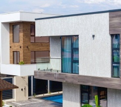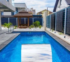 Очень модный современный дом, с благоустроенной территорией, бассейном, хамамом, парковкой, мангалом