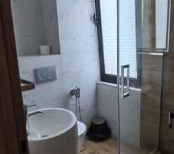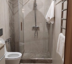 Из минусов - странно спроектирован санузел.. Между душевой и раковиной надо протискиваться бочком, даже стройной девушке. При этом, раковина отодвинута от стены) в общем, пожертвовали удобством ради модной раковины)
