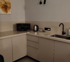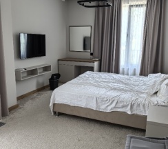 Спасибо за отличный отдых! Все продумано до мелочей, номер комфортный максимально для проживания семьи. Очень лояльная и доброжелательная хозяйка, всегда идёт на встречу гостям. Сама гостиница новая и современная, есть зона отдыха с бассейном и беседкой. Имеется кухня, где можно сварить кофе или заварить чай. Очень понравилось ощущение приватности, соседей не слышно, отличная шумоизоляция. Скоро вернёмся к вам ещё обязательно!