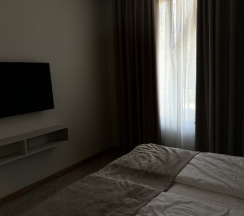 Отдыхали здесь в начале мае и хочется выразить огромную благодарность владельцам отеля за наш отдых в новых, современных, чистых апартаментах! В номере кондиционер, холодильник, большой шкаф, стол. Есть общая кухня с чайником, микроволновкой, кофе и чаем, кулером с водой, гладильная доска. В 5 минутах ходьбы столовая, кафе, КиБ, детская площадка, кофейня. На улице очень тихо и днем и ночью. Самый достойный вариант в радиусе 5 км точно, рекомендуем всем и сами приедем еще.