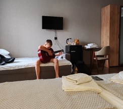 Всем советую этот шикарный отель ,хозяйка просто создаёт уют ,как дома ,внизу кафе очень современное и уютное,утром завтраки вкусные . Номер идеален во всем ,чистота в номере ,зубные щётки, гель,шампунь ,белые полотенца ,тапочки . Прям обязательно советую хоть раз тут побывать . Спасибо вам большое за такой уют и процветания.