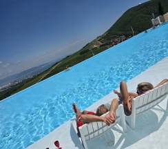 Бассейн это просто пушка, стиль инфинити, его дизайнер подчеркнул видимо из Азиатских стран. Вода прохладная, но при плюс 28 на солнце, она была как раз подстать. Есть сауна/хамам прям тут же не отходя от кассы, лежаков много свободных.