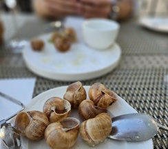 "Бистро". Там проходят завтраки, вполне себе средиземноморский шведский стол, также можно перекусить в обед. Заказывали пиццу (не совсем зашла), улиток (тоже ничего, но лучше брать их в местном ресторане), салат цезарь с креветками (5 баллов), вино шары колдуна тройничок (хорошо освежить горло в обеденный зной).