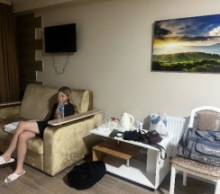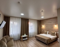 Отличный отель!! Удобное расположение,хорошая мебель ,современные комнаты !! Есть всё,кондёр,чайник,чай,сахар,фен,гели ,шампуни,зубщётки,тапочки . Рядом столовые !