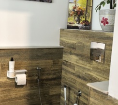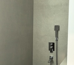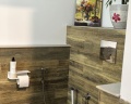 Интерьер красивый, все новое. Есть недочет в душевой -нет двери или шторы, вся вода по ванной комнате.