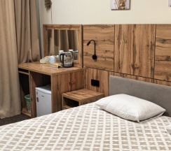 Отель рекомендую. Очень уютный, чистый, в номере есть все необходимое, одноразовые средства личной гигиены, тапочки, фен, холодильник, чайник, стаканы, чай, сахар, вода.