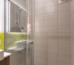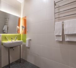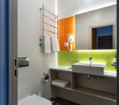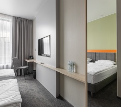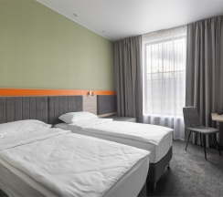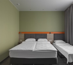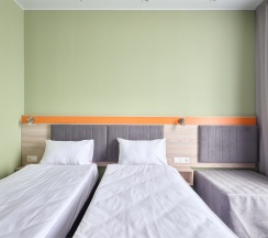Номер площадью 18 м2 с 2 односпальными кроватями с анатомическим матрасом рассчитан на 2 взрослых и 1 ребенка.
