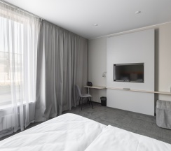 Кровать с ортопедическим матрасом, телевизор, мини-бар, кондиционер, телефон. В собственной ванной комнате есть все необходимое для путешественников: набор полотенец, туалетно-косметические принадлежности, фен, тапочки. Для комфортного отдыха в номерах используются светонепроницаемые шторы и улучшенная звукоизоляция. Доступ к высокоскоростному интернету и рабочий уголок позволяют оперативно и комфортно решать рабочие вопросы.