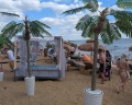 2) Кухня-гостиная с раскладным диваном 140*200, кондиционером, телевизором. На кухне имеется вся необходимая посуда для готовки и приема пищи, ножи, ложки, вилки, открывашка, микроволновка, холодильник. Из кухни можно попасть на террасу, где стоит стол и 2 скамейки.