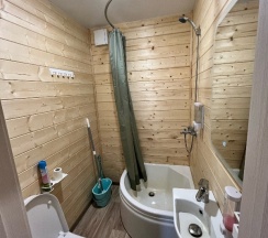 3) В ванной комнате есть все гигиенические принадлежности: туалетная бумага, шампунь, гель для душа, зубная паста. Полотенца для тела и для рук. Также имеются гладильная доска, утюг, фен.