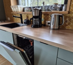 Кухня оснащена холодильником, плитой, микроволновой печью, посудомоечной машиной, чайником, кофемашиной и необходимым набором посуды на 6 персон.