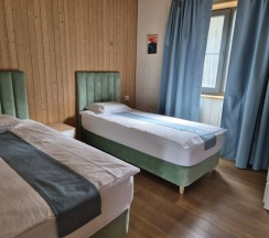 На кроватях ортопедические матрасы и подушки с эффектом памяти, на окнах блек аут шторы.