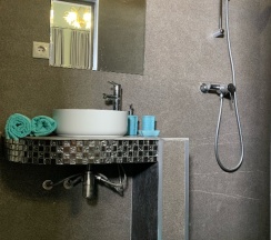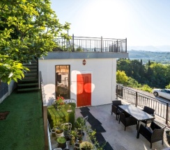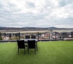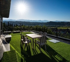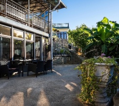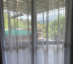 Действительно - виды, как с дельтаплана! Горы !!! Море !!! Кипарисы !!! Хороший уютный гостевой дом расположен на трех уровнях на горке !! Здесь мы побывали не далеко от моря, но уже в горах! Горный чистый воздух пьянит без вина!!! Дом с небольшой территорией в зелени, с бассейном (что выручало нас когда штормило море!) Есть площадки позагорать и посидеть вечерком своей компанией! Очень выручала кухня! Цены в ресторанах не дешевые, а тут рядом колхозный магазин с фермерскими продуктами. Вечером можно приготовить ужин. Есть трансфер до моря ехать минут 5, но мы пользовались каршерингом, очень удобно! В номерах все новое и чистое! Высокие потолки и огромные окна! Рядом аэропорт, самолёты летают, но не утомляют! Вторую ночь я их уже не слышала! А какая дружелюбная собачка Дельта! Запоминает каждого туриста и если позволите - зацелует вас !)) Она очень любит детей и вкусняшки!