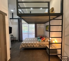 Прекрасное место! Прекрасные люди! Этакий райский уголок. Мы провели здесь 3 дня, но хотелось остаться навсегда. Есть все для отличного отдыха, вот именно отдыха. Чистый и красивый бассейн. Эту зону мы облюбовали больше всего). Есть развлечения в виде бильярда и настольного тенниса, несколько мангальных зон, можно при желании даже свидание на крыше устроить, где вид на ночной аэропорт задаёт дополнительную атмосферу.