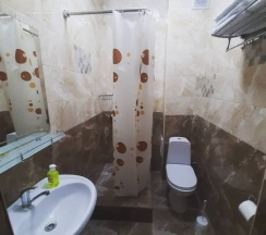 Понравилось: Очень понравился номер-брали трёхместный, одна двухспальная кровать и одна односпальная. Хорошие матрасы, хорошая мебель!!! Постельное белье белоснежное! Фото соответсвует реальности! Плоский телевизор, холодильник, шкаф, зеркало, есть в комнате выдвижной стол, можно и в номере перекусить, в ванной есть мыло , фен, туалетная бумага, полотенца большие банные и маленькие для лица, кондиционер просто спасал) есть балкон с бельевой веревкой и прищепками. Жилые комнаты 2 и 3 этаж, на первом этаже парковка и общая кухня. Все чисто и аккуратно, полно посуды для приготовления еды, даже мультиварка есть, две плиты, две раковины, обеденные столы, холодильник в номере! Также есть общий туалет и душ на первом этаже, очень удобно, не надо подниматься в номер! Три мангала, шампура, сетка для жарки. А главное есть глубокий и большой бассейн с подогревом, температура 28-29 градусов! Купались в нем даже в дождь) лежаки и полотно под травку у бассейна! Вода в номере в ванной всегда горячая! Дом находится на первой линии, 5 минут до моря, проход через рынок. На территории гостевого дома везде видеонаблюдение! Спасибо хозяйке за добродушную встречу и за доброе пожелание по отъезду! Пляж песочный, очень понравилось. Рекомендую на набережной ресторан Лермонтов!!! Очень вкусно и весело, для любителей потанцевать самое-то!!! Если планируете питаться в столовых, то не стоит,порции маленькие и еда не вкусная. В целом отдых понравился!!! Спасибо хозяевам!!! Молодцы 👍🏻