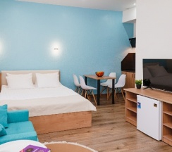 Отдыхали здесь неделю в августе, с детьми, нам очень понравилось, пляж рядом, свой бассейн, в номере кухня, брали двухкомнатный номер на первом этаже. Везде чистота и порядок, персонал вежливый и отзывчивый, особенно администраторы Николай и Арсен, им отдельное спасибо, возле отеля можно бесплатно поставить машину, вай фай работает, завтраки очень разнообразные и вкусные, в общем хорошее место!