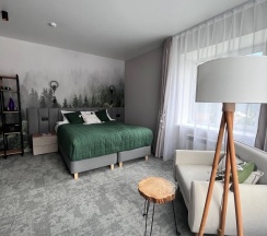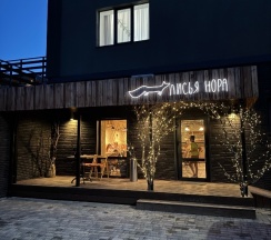 Отличное место для отдыха от городской суеты! Чистота, современный интерьер, есть абсолютно всё необходимое. На 1 этаже уютное кафе, готовят очень вкусные роллы. Очень красивые виды. Банька и купель тоже огонь. Только вот завтрак хотелось бы пораньше